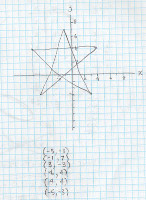 Next we went on to Cartesian co-ordinates. Sophie was familiar with grids and co-ordinates even if she hadn't worked specifically with Cartesian graphing. But we had some fun with the secret puzzles like those shown above. I wrote out the co-ordinates and her job was to plot them and drawn lines connecting them to find the secret shape.